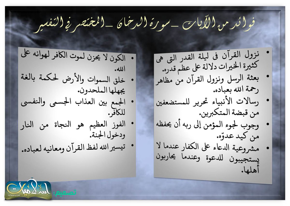 - فوائد من آيات #سورة_الدخان من المختصر في التفسير https://pbs.twimg.com/media/Cf8Oaa2WcAA6lpV.jpg